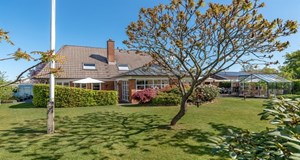 På Rønne Alle 80 i Sunds er der nu en rummelig villa til salg. Med et beboelsesareal på 257 kvadratmeter fordelt på 6 værelser, tilbyder ejendommen god plads til en familie, der ønsker masser af plads indendørs.